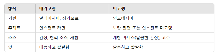 매기고랭과 미고랭은 둘 다 볶음면이지만, 기원과 맛, 조리 방식에서 큰 차이가 있습니다. 차이점을 자세히 살펴볼까요?