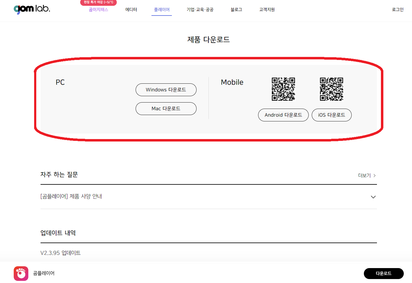 먼저 아래의 다운로드 링크를 클릭하여 GOM 플레이어를 다운로드하세요