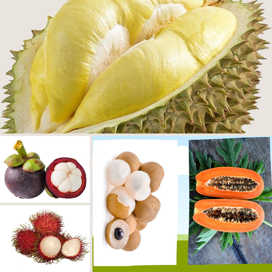 - 두리안: '과일의 왕'으로 불리며, 매우 강한 냄새와 크리미한 과육을 가지고 있습니다.