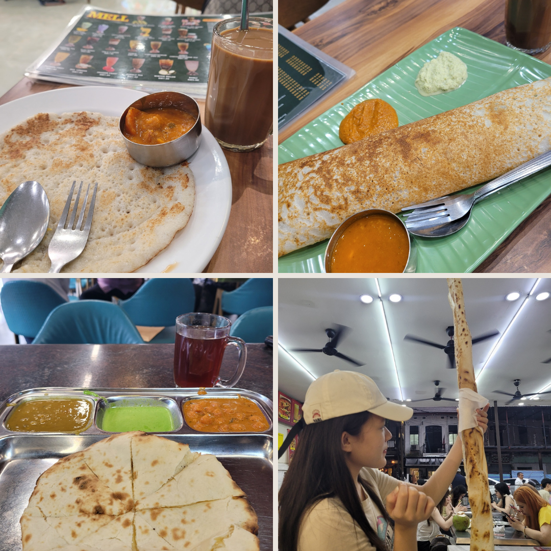 - Masala Thosai: 감자 커리가 들어간 버전으로 매콤하고 고소한 맛이 특징.