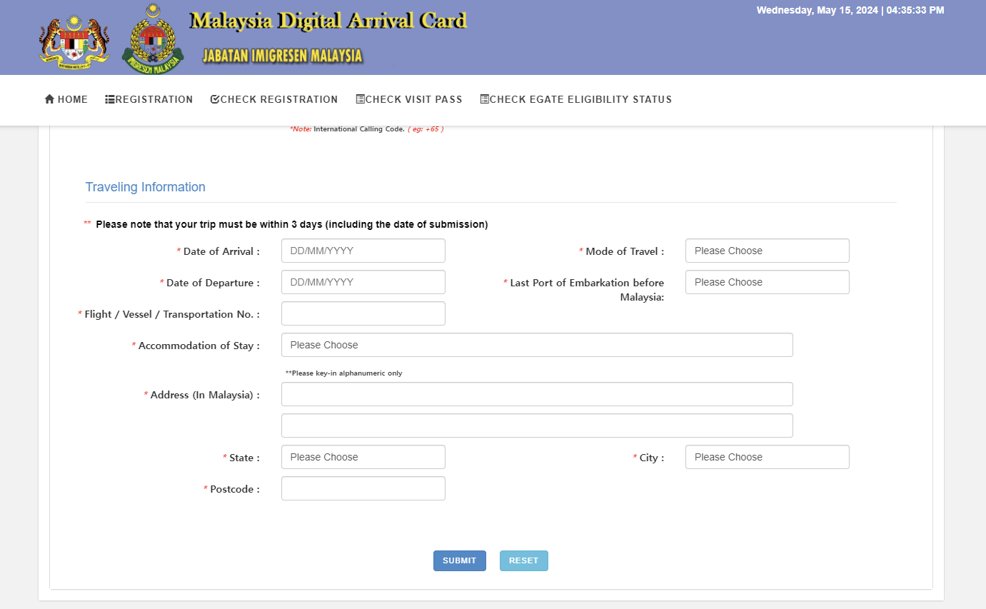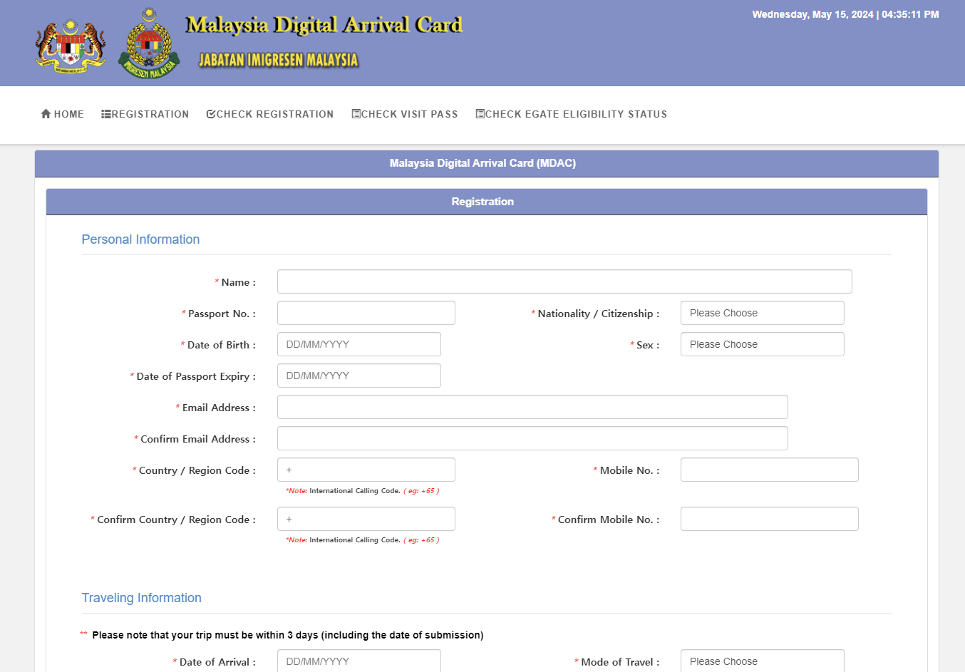 MDAC는 말레이시아 도착 전에 작성해야 합니다. 출발 전 최소 24시간 전에 작성하는 것이 좋습니다.