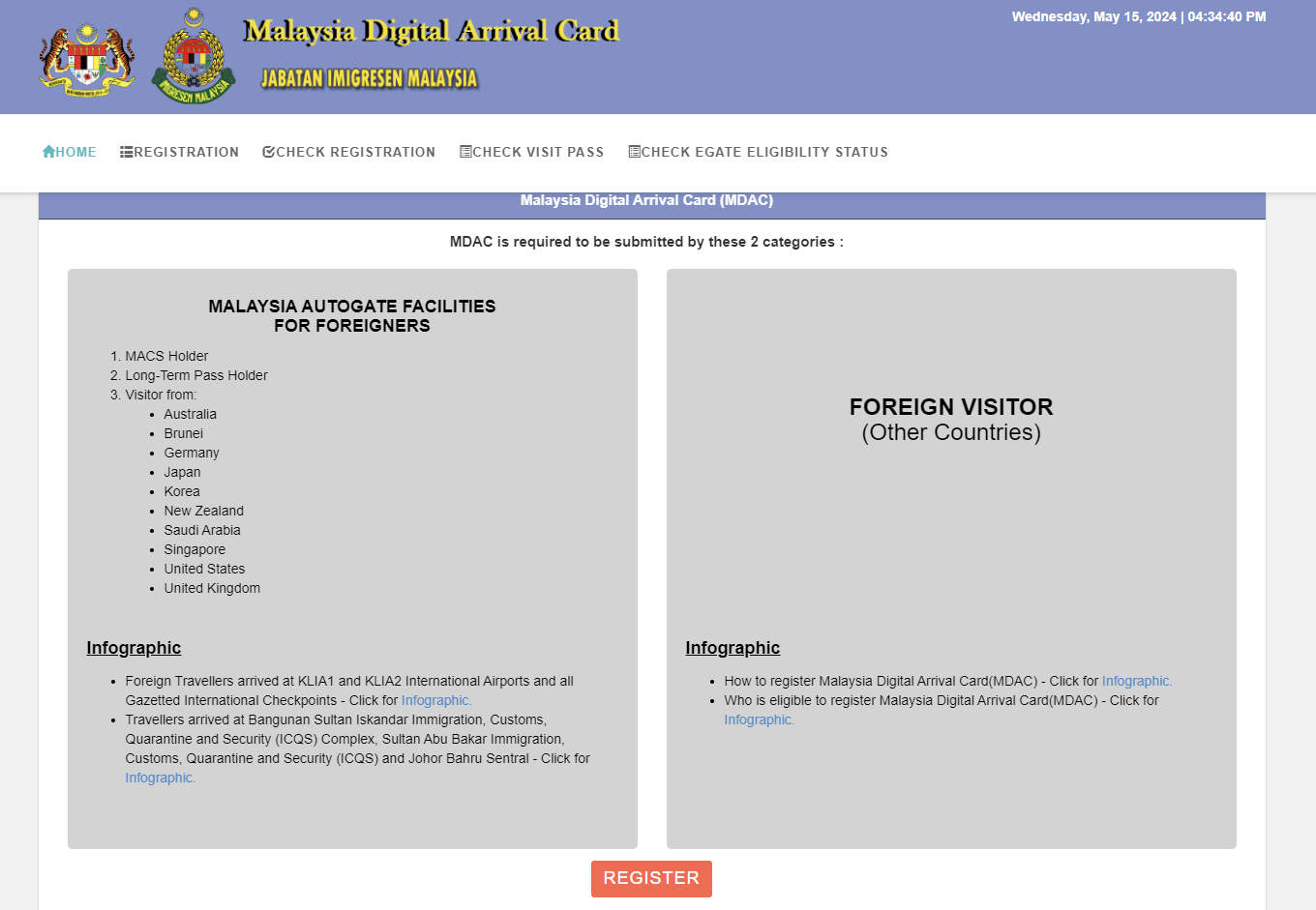 사이트에 접속한 후 "REGISTER" 버튼을 클릭하여 작성을 진행합니다.