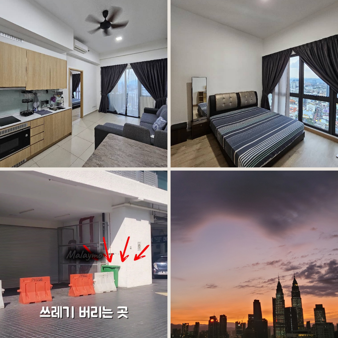 쓰레기 배출 공간은 말레이시아의 방식에 따라 분리수거 없이 배출할 수 있습니다. 규격 봉투도 없으므로, 쓰레기가 새지 않게 잘 포장하여 배출하시면 됩니다. 만약 음식물 쓰레기가 있다면 일반 쓰레기와 따로 분리하여 버리는 것도 추천드립니다.