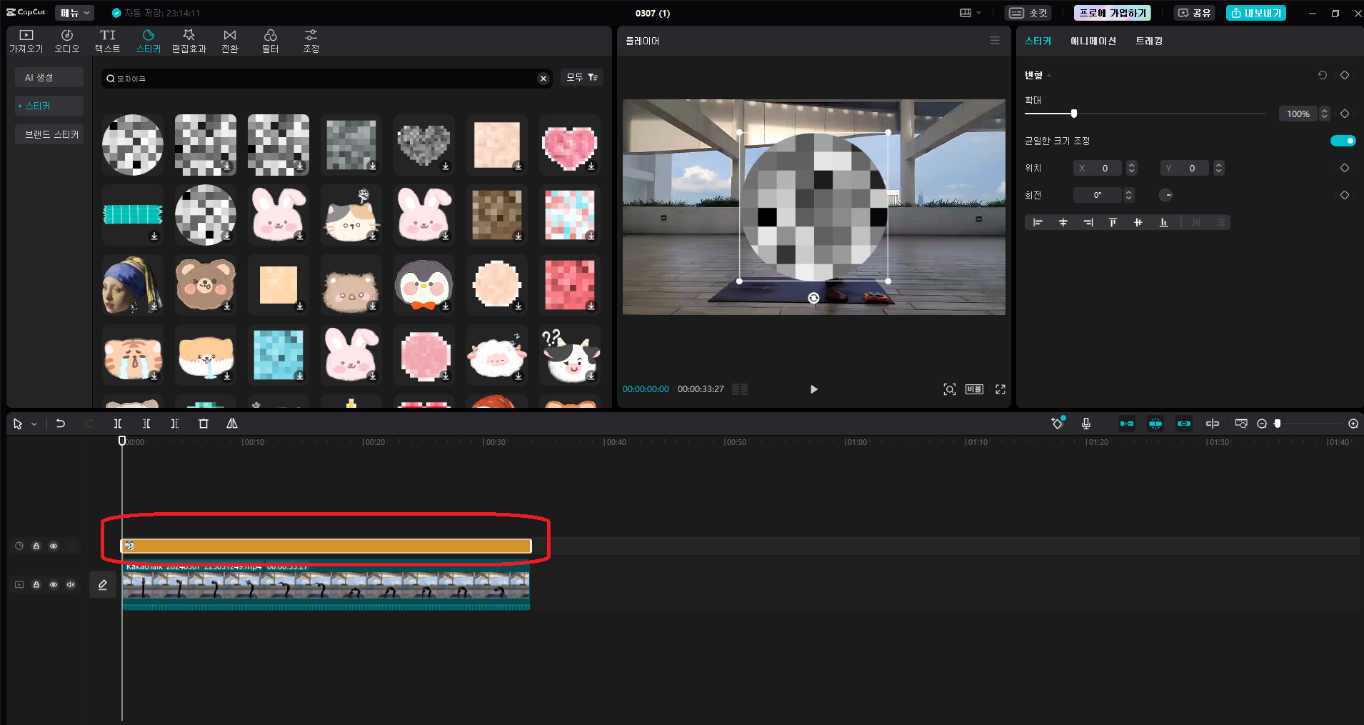3. 모자이크 스티커 추가하기