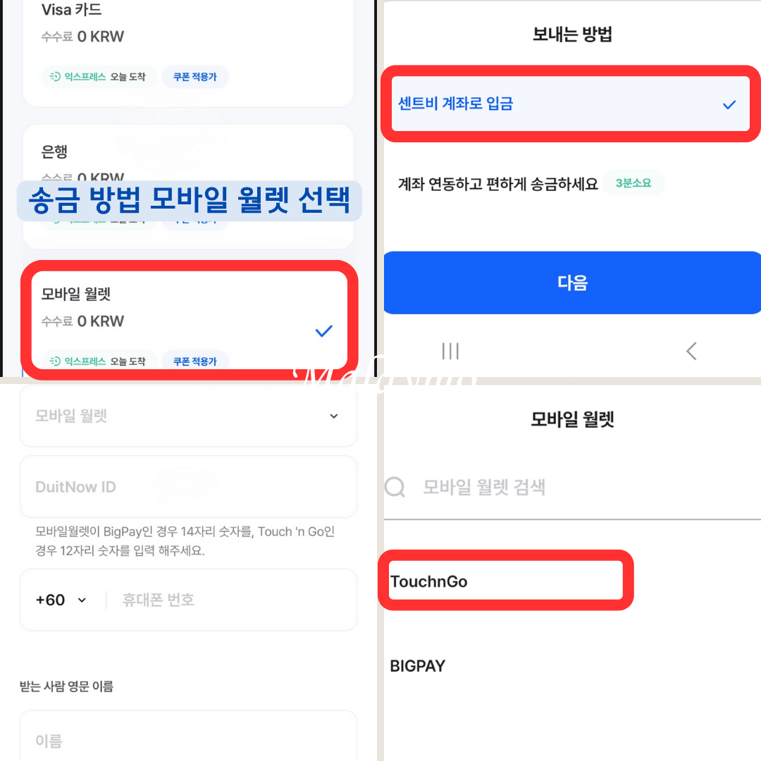 수취 방식은 모바일 월렛을 선택하면 되며, 말레이시아에서 가장 많이 사용되는 전자지갑 중 하나인 Touch ‘n Go eWallet으로 받을 수 있습니다.