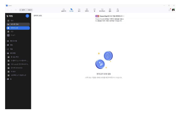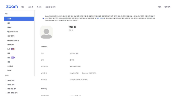 다음과 같은 화면이 웹사이트 zoom 로그인한 화면입니다. PC 상에서 zoom 앱 사용 시 아래와 같은 화면이 나옵니다.