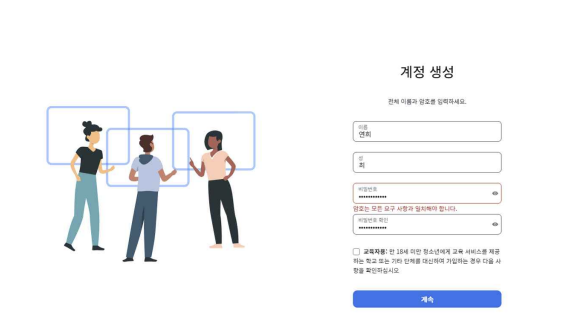 이메일 코드를 확인하고 나면 본격적으로 계정 생성을 하게 됩니다.