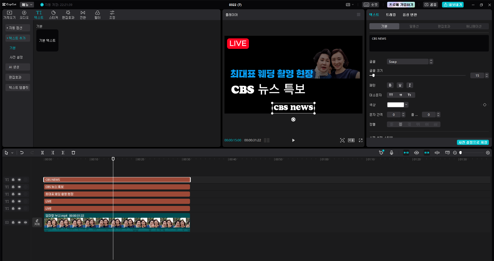 SBS 뉴스 특보라는 텍스트를 추가하고, 적절한 위치와 크기로 조절합니다. 원하는 폰트와 색상을 선택하여 완성합니다.
