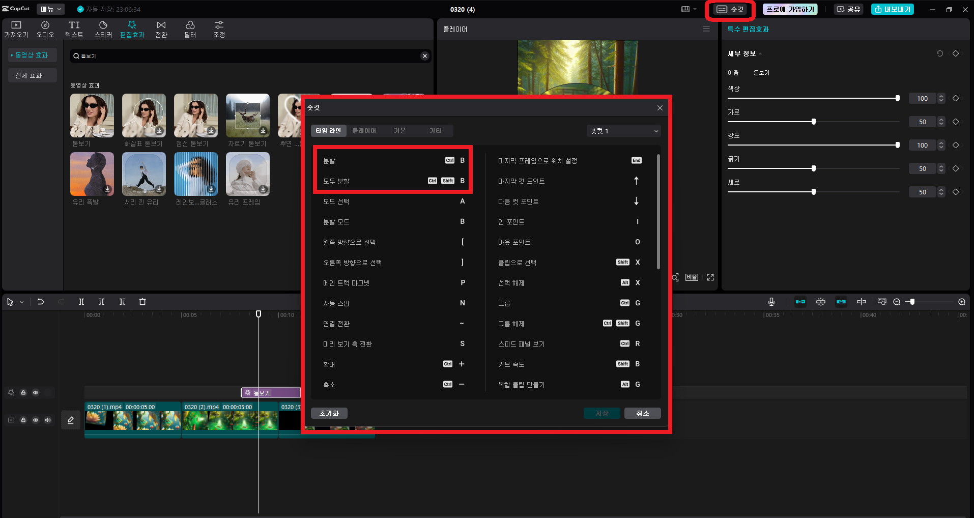 캡컷(PC)을 사용한 영상 편집 단축키 소개