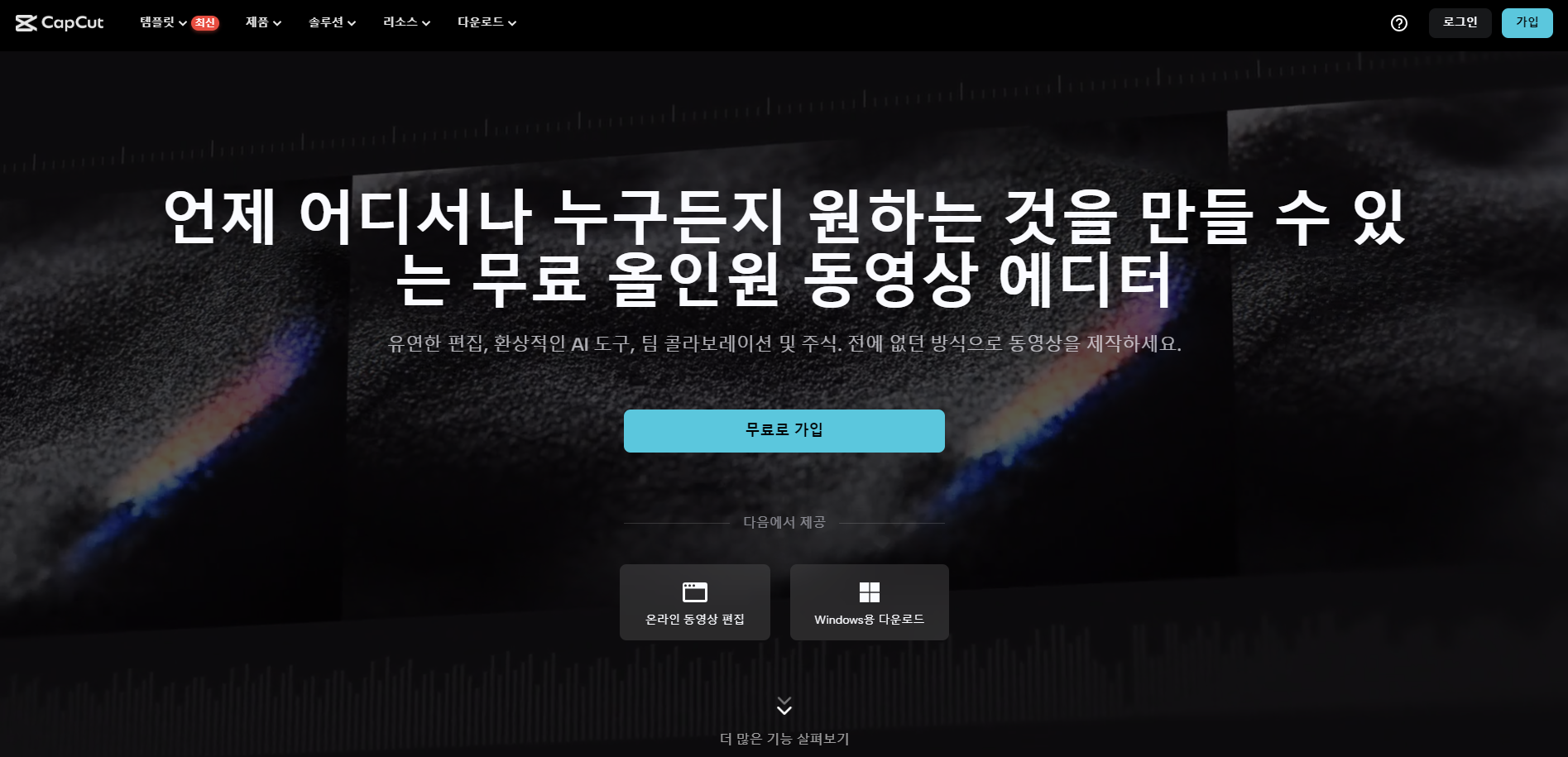 캡컷은 네이버나 다음에서 검색 시 바로가기 사이트가 나오지 않습니다. 구글에서 캡컷으로 검색하면 첫 번째로 나오는 사이트에 접속합니다. 캡컷 사이트 주소입니다. (https://www.capcut.com/ko-kr/) '캡 컷 올인원 동영상 에디터'를 클릭하면 다운로드 페이지로 이동합니다. 윈도우 사용자라면 윈도우용 다운로드를 선택하고, 다운로드가 완료되면 설치를 실행합니다. 이때, 가입 여부는 상관없습니다. 온라인 동영상 편집을 선택하시면 별도의 다운로드는 하지 않고 온라인상에서 진행이 가능합니다. 단, 캡컷 편집의 속도는 느릴 수 있습니다.