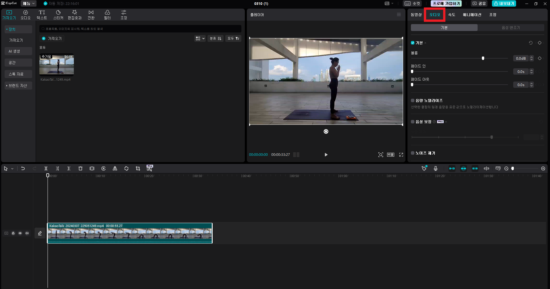 1. 에어컨 잡음 제거를 위한 영상 소리 확인 과정