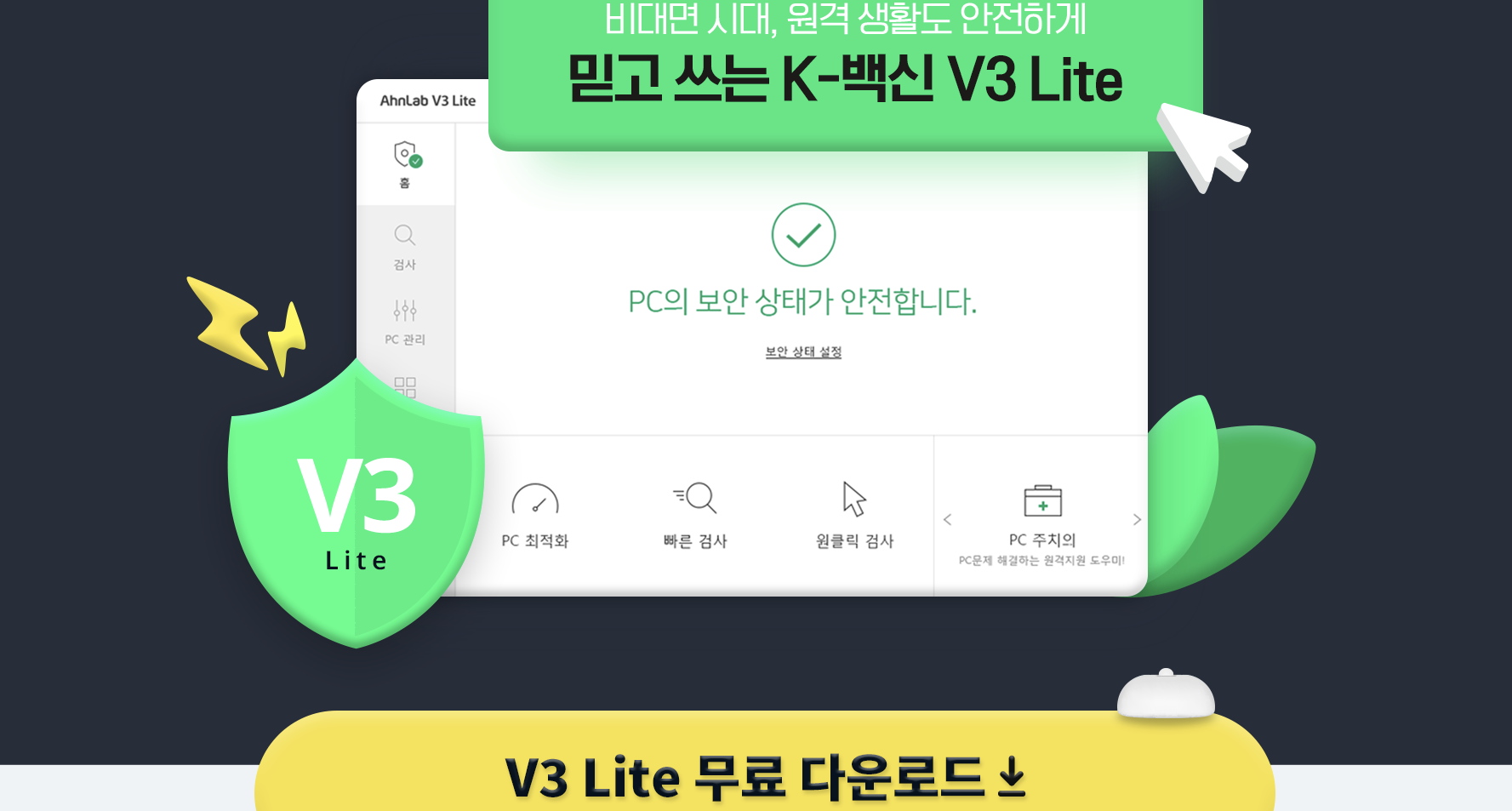 V3무료백신 다움로드로 안전한 PC 사용하시기를 바랍니다.